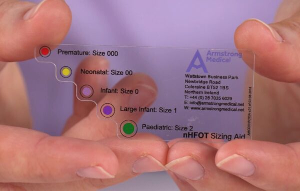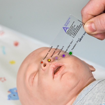 - La cánula neonatal está disponible en 5 tamaños para pacientes neonatales y pediátricos, cubriendo flujos de 1 L a 25 L por minuto.